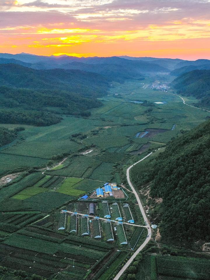 這是吉林省延邊朝鮮族自治州安圖縣福林村旁的野山菜種植大棚(2020年8月25日攝,無人機照片)。新華社記者 許暢 攝