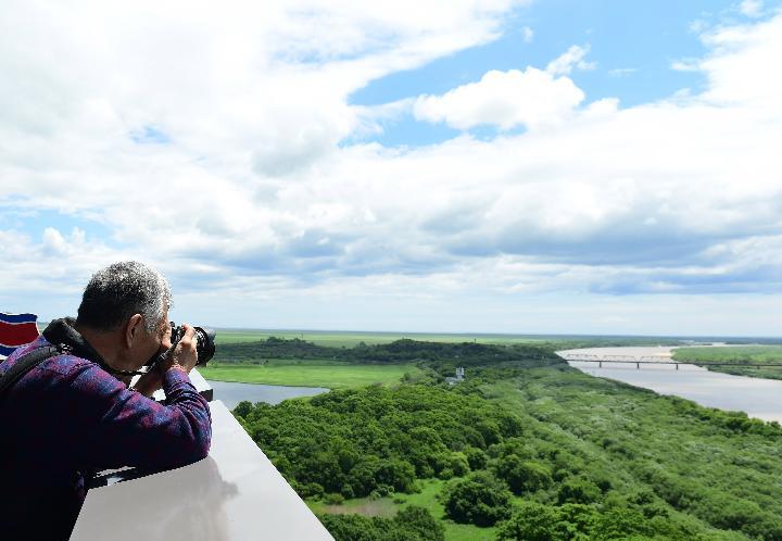 2019年6月21日,游客在琿春市防川景區拍照。新華社記者 林宏 攝