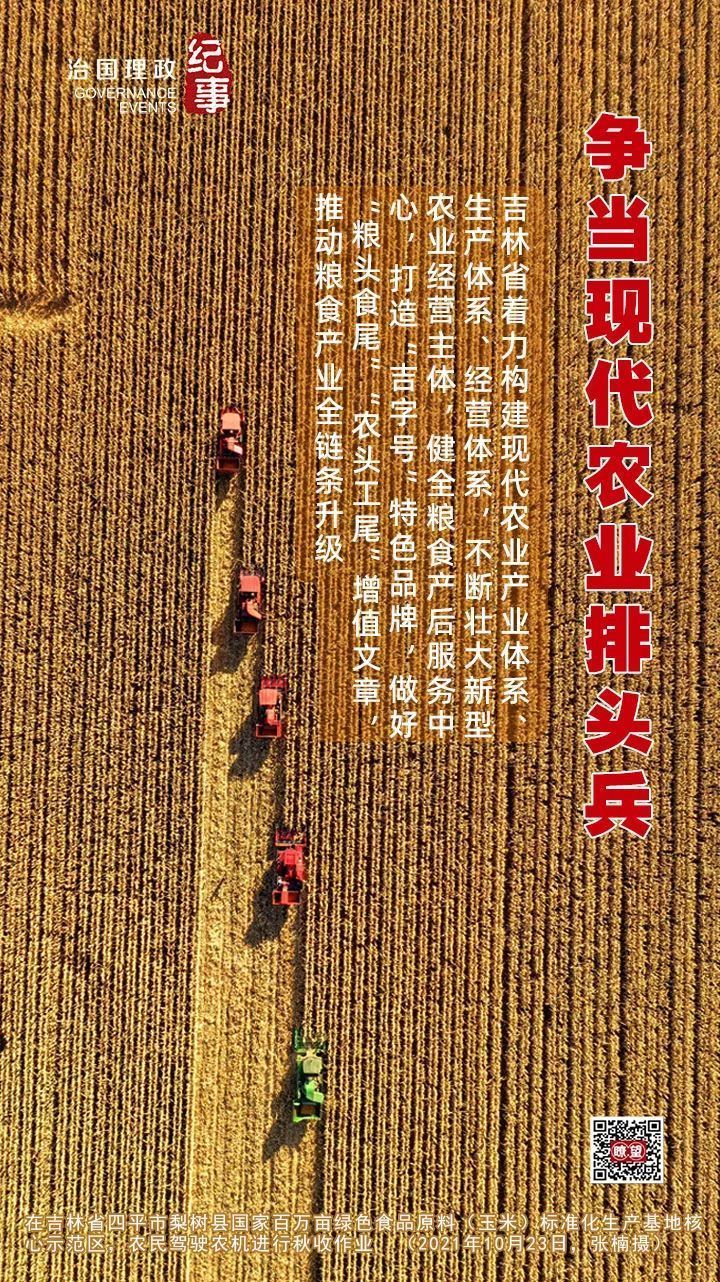 ◆ 吉林省著力構建現代農業產業體系、生產體系、經營體系,不斷壯大新型農業經營主體,健全糧食產后服務中心,打造“吉字號”特色品牌,做好“糧頭食尾”“農頭工尾”增值文章,推動糧食產業全鏈條升級。