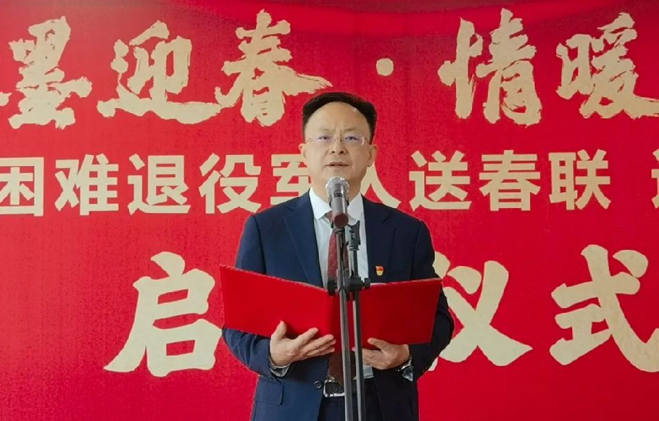 參加啟動儀式的領導向困難退役軍人代表贈送春聯,向書法家和會員代表贈送關愛退役軍人榮譽激勵牌。省退役軍人事務廳副廳長張元軍、省關愛退役軍人和軍屬烈屬協會會長李斌分別致辭。