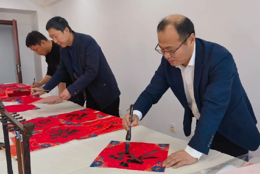 啟動儀式現場翰墨飄香、氣氛濃烈。長春硬筆書法家協會主席劉永鎮、常務副主席王洪等書法家們各展其才、精心創作,傾情揮毫潑墨,一行行或遒勁有力、或靈動飄逸的毛筆字躍然紙上。一副副寓意美好的春聯,一張張喜慶吉祥的“?!弊?,飽含著書法家們對退役軍人的關愛,表達著社會各界對退役軍人的美好祝福。