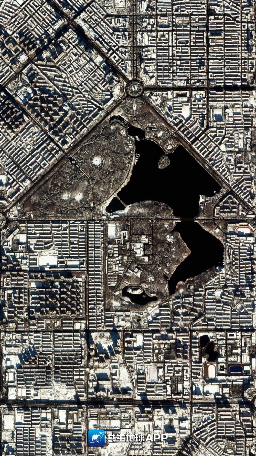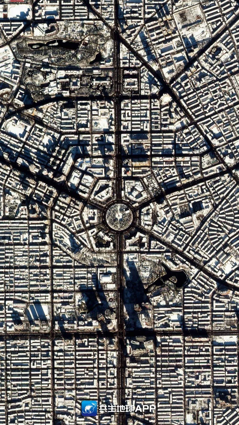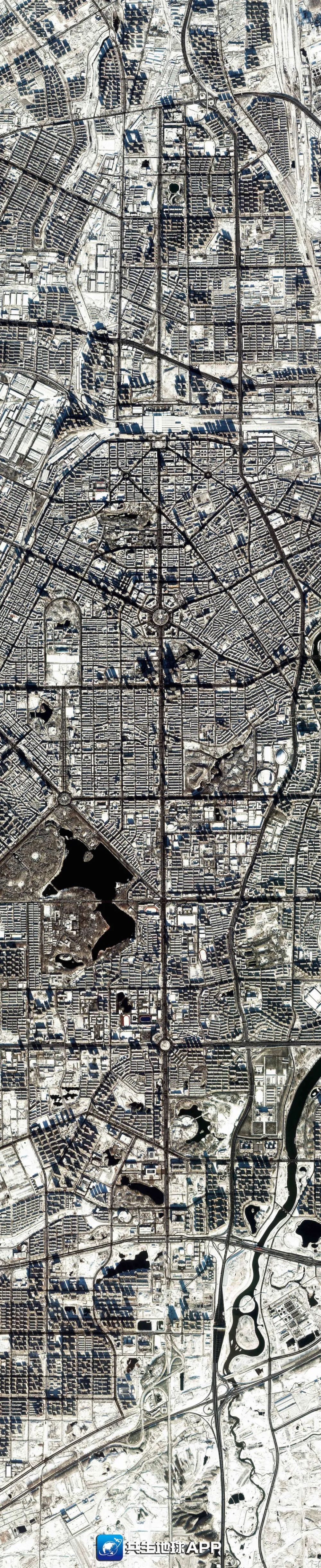 ↑這是“吉林一號”衛星在太空中拍攝的長春中軸線