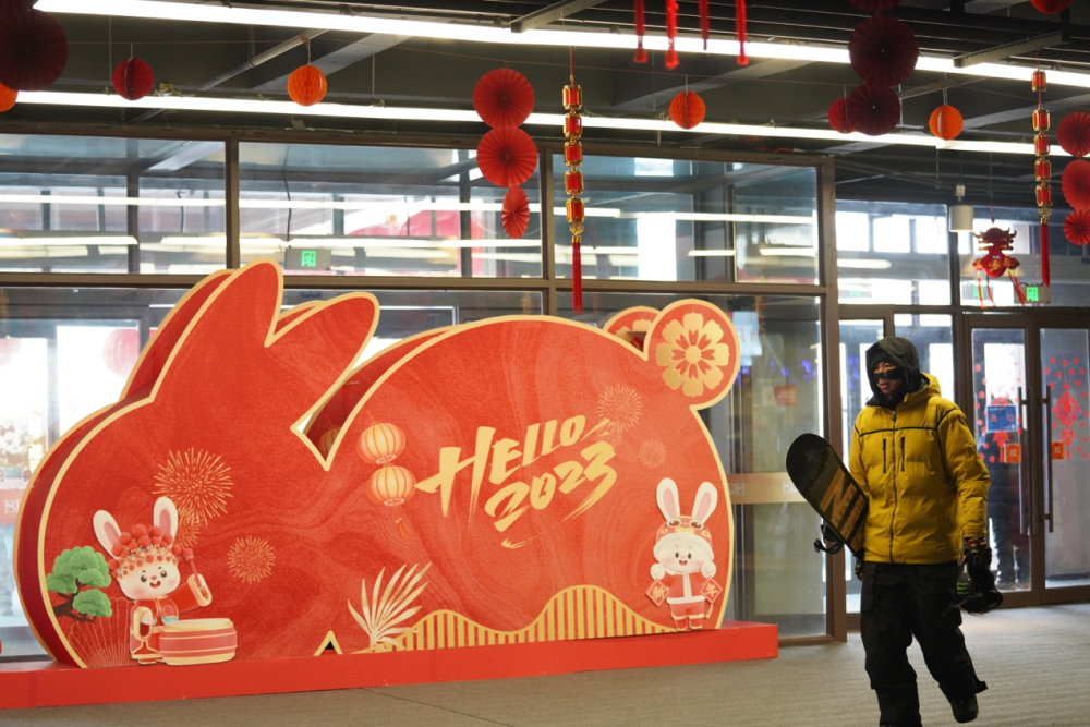 1月24日,游客行走在北大湖滑雪度假區的雪具大廳里。新華社記者 顏麟蘊攝