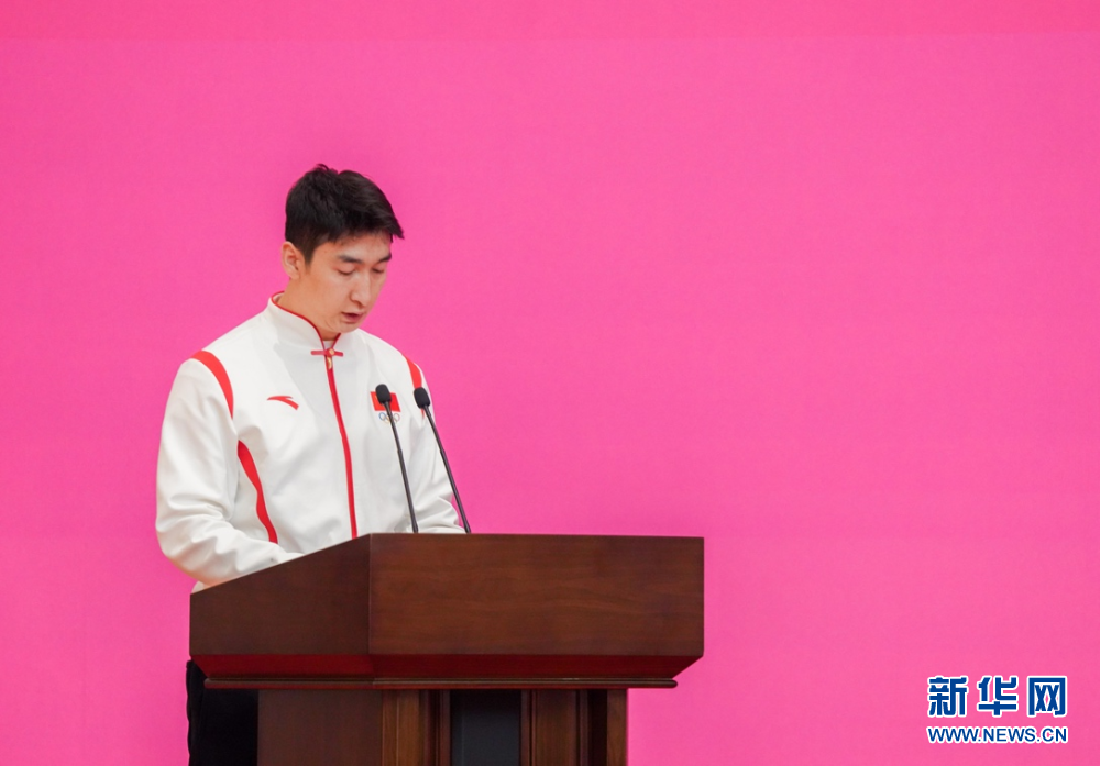 冬奧冠軍武大靖在吉林省冰雪強省建設大會上發言。新華社記者 王帆攝