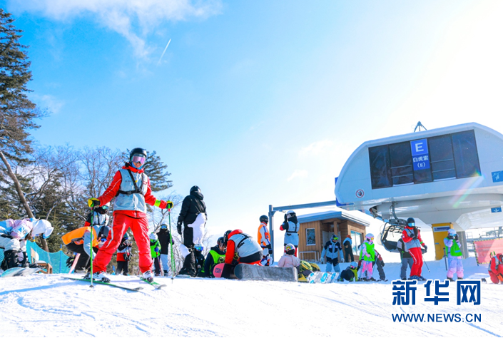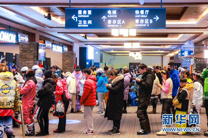 游客在長白山萬達國際度假區排隊領取雪具 陳慧 攝