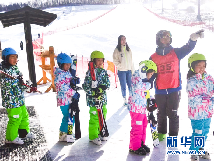幾名小朋友在長白山魯能勝地度假區體驗滑雪 何紹東 攝