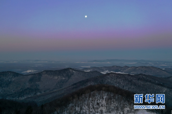 這是在長白山萬達國際度假區拍攝的晨曦中的長白山主峰