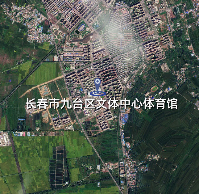 這是2022年9月6日“吉林一號”衛星在太空中拍攝的長春市九臺區文體中心體育館俯瞰圖。(長光衛星技術股份有限公司供圖)