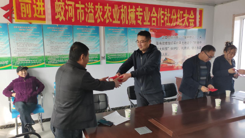 村民楊茂全是合作社最早的社員,合作社一成立,他就與合作社簽訂了土地托管合同。前不久,楊茂全同其他25戶農戶領到了所在合作社——蛟河市溢農農業機械專業合作社上年度的分紅5.8萬元。