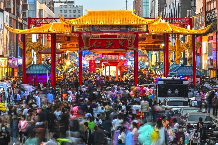 6月1日,游人在四平市仁興里沉浸式文旅街區內參觀游覽。新華社記者 許暢 攝