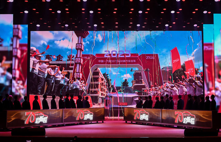 7月15日,一汽生產的第5577萬輛汽車出車儀式在中國一汽成立70周年慶祝大會上舉行。 新華社記者 顏麟蘊 攝