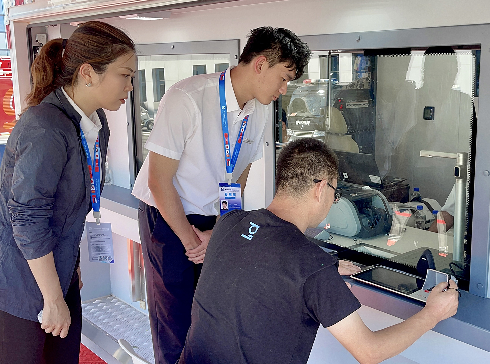 這臺工商銀行自主研發的流動服務車,依托“技術驅動、服務協同、場景鏈接、生態融合”,努力創造極致的客戶體驗,將柜面業務延伸至產業園區、居民社區、軍營、高校等相對封閉的場景,更好地滿足人民群眾的金融需求,服務現代金融體系建設,加快推動科技創新與金融服務的深度融合。在博覽會現場,科技感十足的流動服務車給參展商和游客留下深刻印象,獲得廣泛好評。