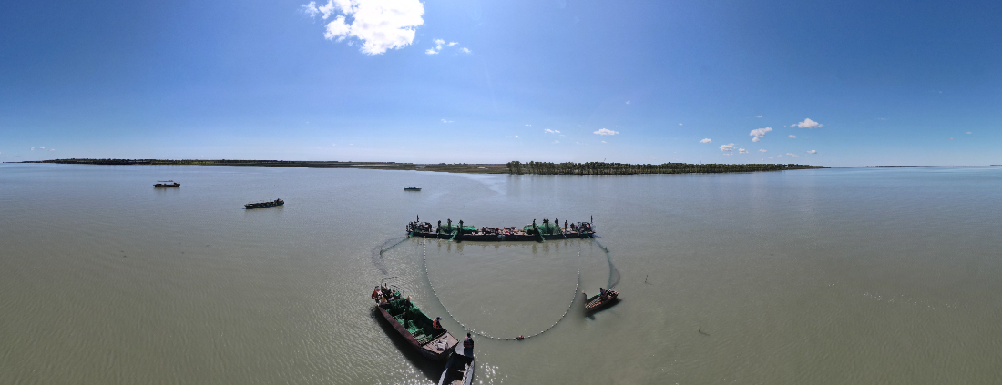 “年年有魚,年年有余”,查干湖科學捕撈,用大眼網,4斤以下的魚可直接漏掉,保護魚類繁衍。同時,每年春秋兩季向湖中投放魚苗1100萬尾,捕育結合。