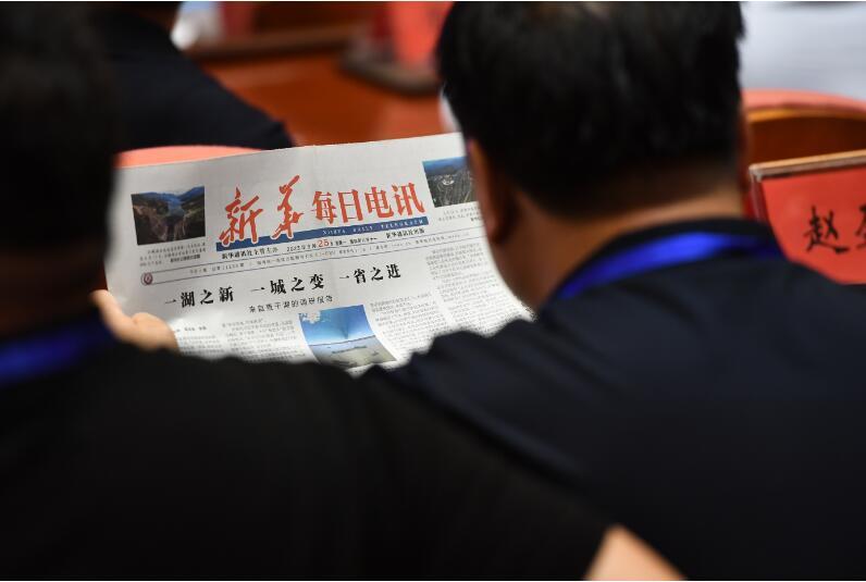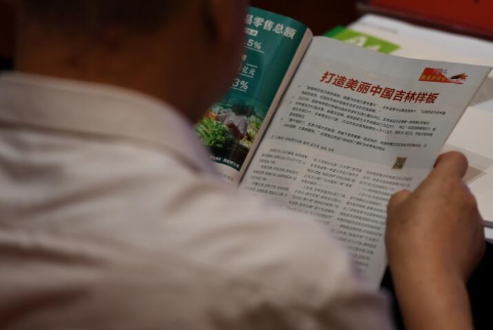 在9月26日舉行的吉林省生態環境保護大會上,參會者閱讀新華社報道。
