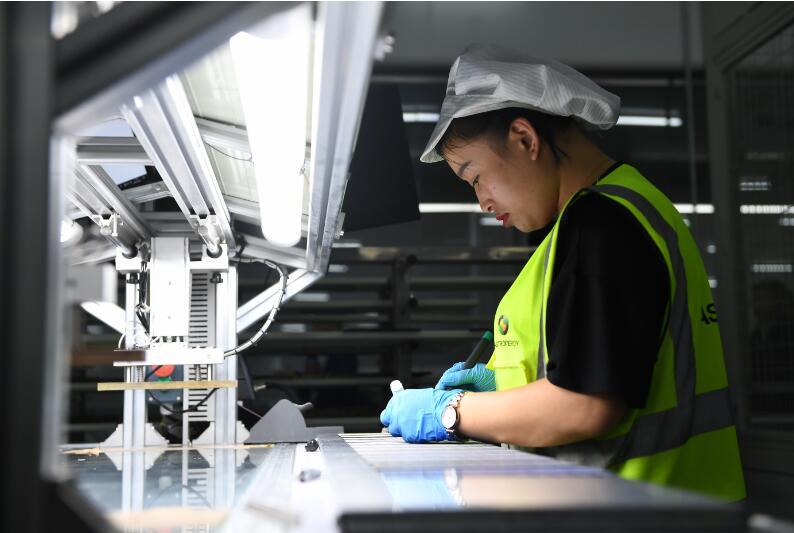 9月26日,在松原市新能光伏科技有限公司,工作人員檢查光伏組件。