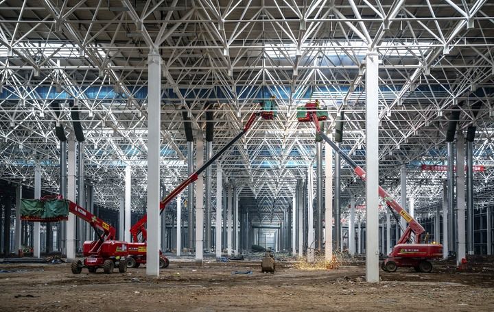 工作人員在奧迪一汽新能源汽車項目建設現場進行施工作業(1月31日攝)。新華社發(王勐 攝)
