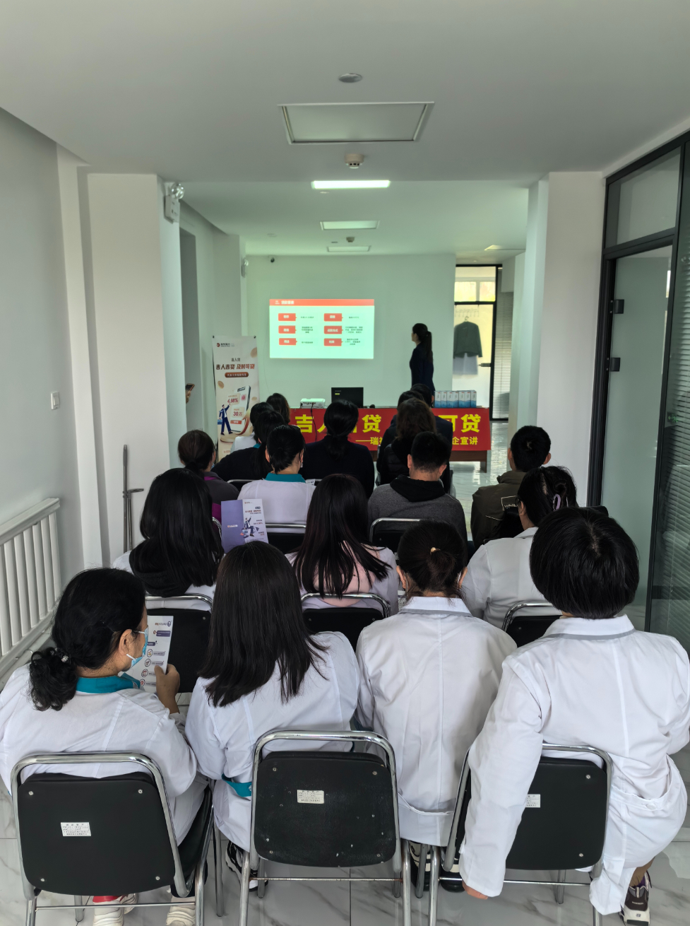 近日吉林銀行長春瑞祥支行零售信貸部經理帶領客戶經理走進長春市南關區富裕社區衛生服務中心開展“吉人貸”業務宣講,此次參會共20余人。