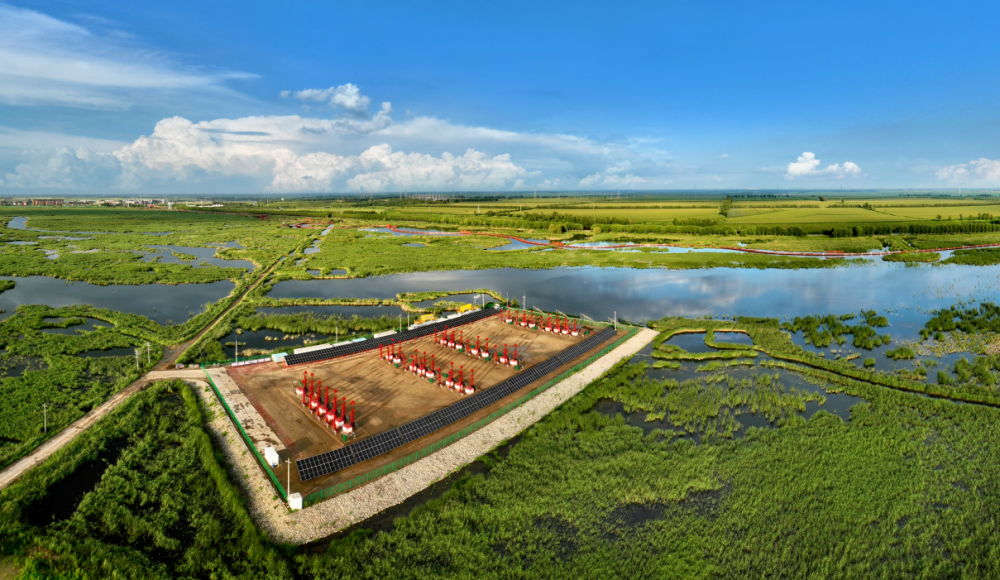 今年8月,在碧水藍天下的查干湖畔傳來好消息——吉林油田新立采油廠Ⅲ區塊光熱系統正式并網運行,標志著亞洲最大陸上采油平臺集群零碳示范區建成投運。中國第一桶“零碳原油”在此誕生。這是綠色油田生態開發建設取得的又一重大成果。