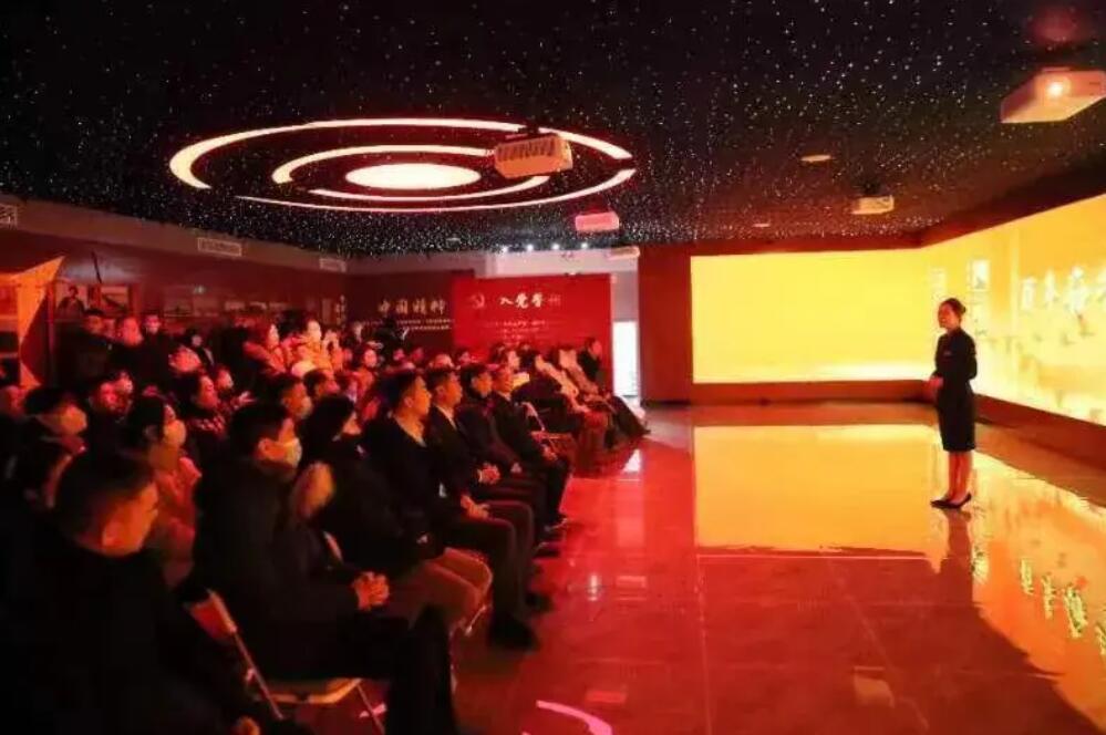 在黨史宣講展廳中,講解員分別從黨史四個歷史階段的關鍵時間節點、重要歷史事件、重點人物為大家開展宣講,結合“影視同期聲”“歌曲渲染”“圖文并茂”等特色形式,將黨的歷史在270°U型互動影像上予以充分展示,為宣講骨干帶來一場生動而深刻的黨史課程。