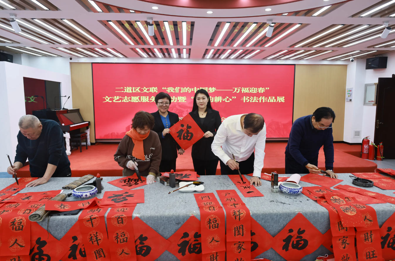 1月11日,由長春市二道區文學藝術界聯合會主辦,區書法家協會、東站街道承辦的二道區文聯“我們的中國夢——萬福迎春”文藝志愿服務活動暨“墨韻耕心”書法作品展在十委社區拉開序幕。長春市文學藝術界聯合會副主席羅仙子,區委常委、宣傳部部長郭志剛參加首日活動。