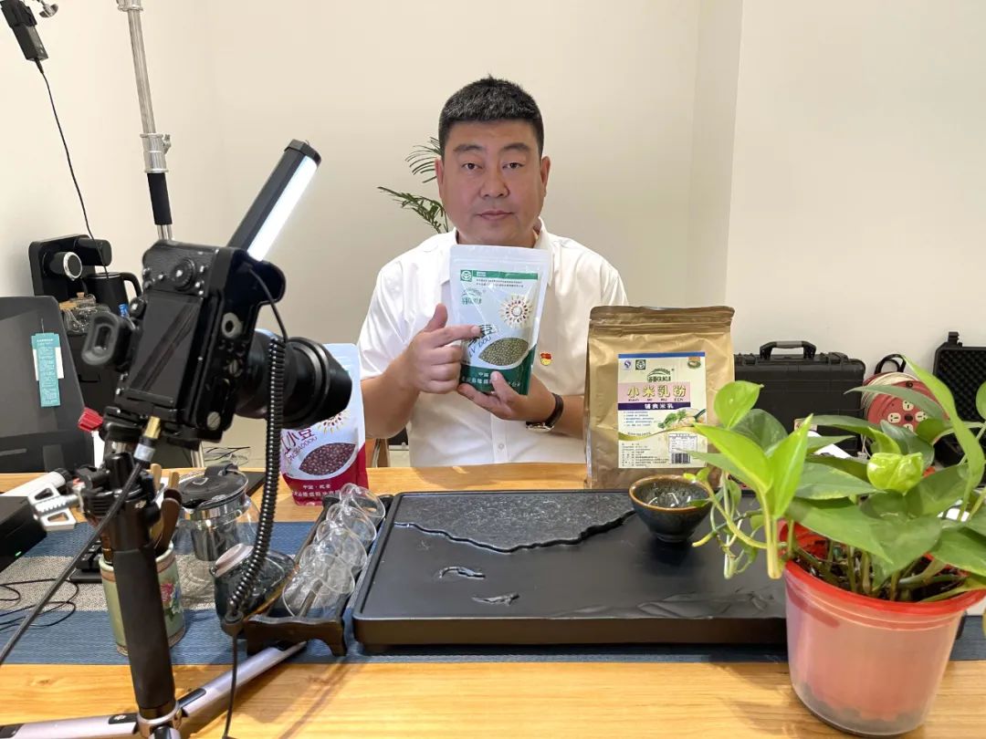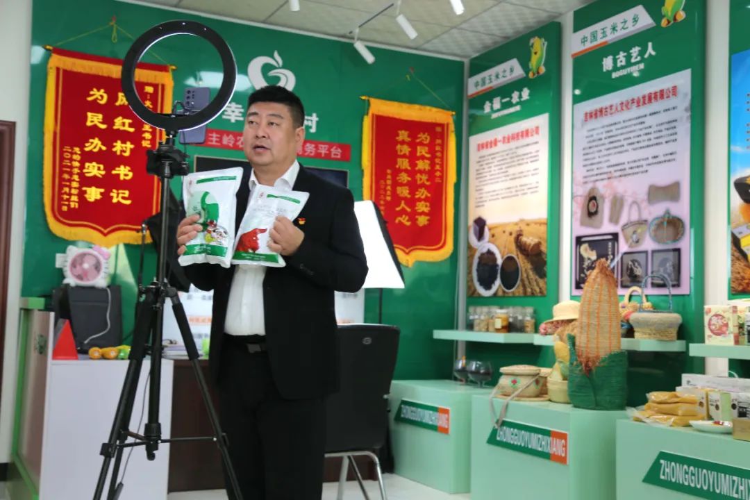 一張擺滿本地特產的桌子和一套直播設備,這便是公主嶺市環嶺街道火炬村黨支部書記王曉丹“直播”的舞臺。