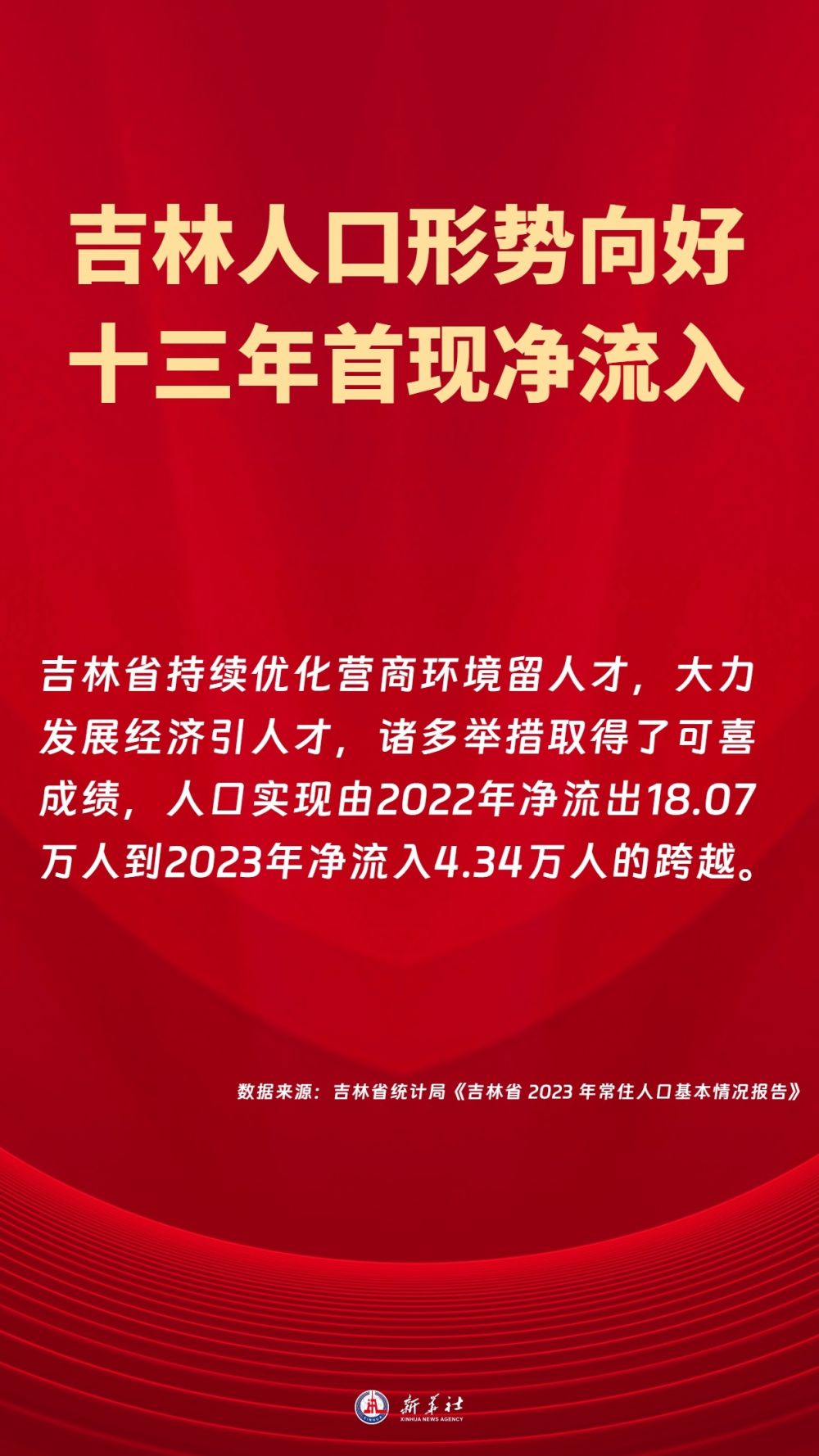 報告稱,吉林省持續優化營商環境留人才,大力發展經濟引人才,人口實現由2022年凈流出18.07萬人到2023年凈流入4.34萬人的跨越。