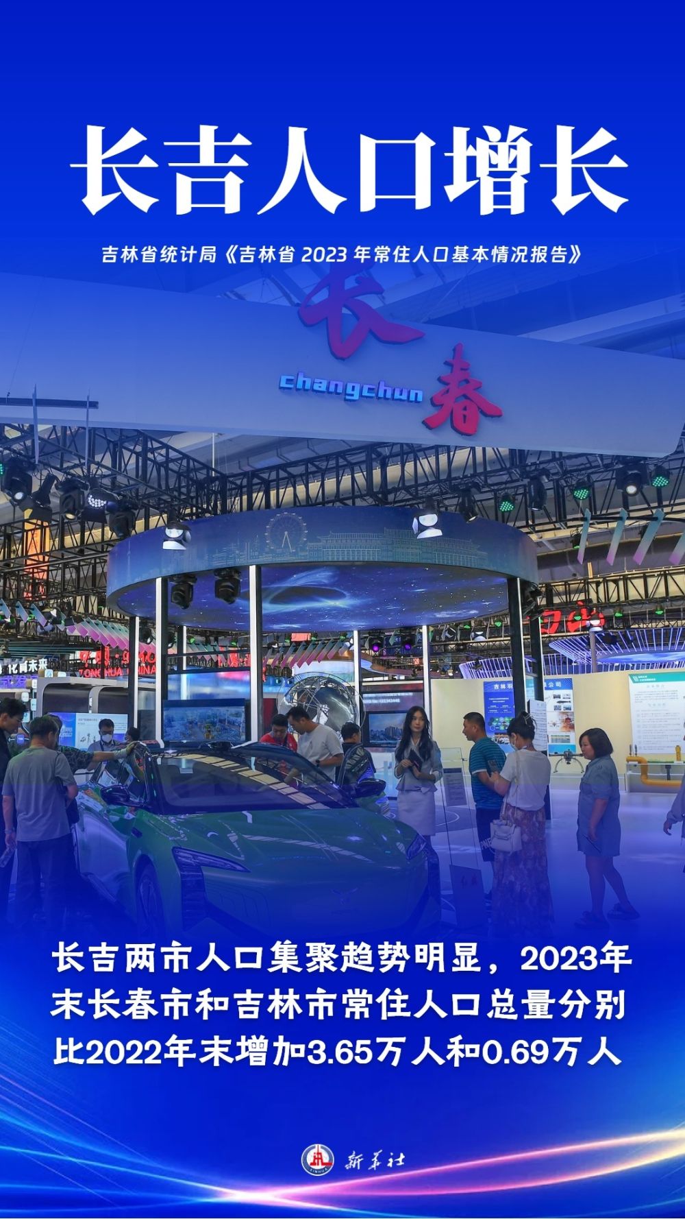 此外,長吉兩市人口集聚趨勢明顯。2023年末長春市和吉林市常住人口總量分別比2022年末增加3.65萬人和0.69萬人。