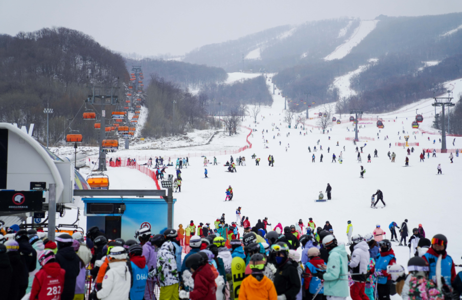 2023年12月30日,滑雪愛好者在吉林省吉林市萬科松花湖度假區滑雪。新華社記者 許暢 攝