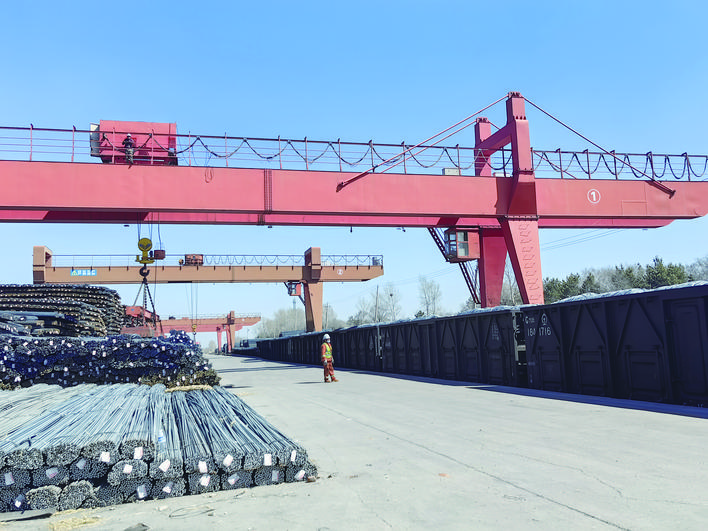 中澳城建材大市場內,3000噸鋼材正由園區內的火車運送進站。
