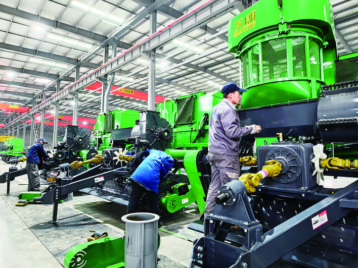 在位于長春九臺經濟開發區的天朗現代農機產業園里,產業工人正在組裝農機。