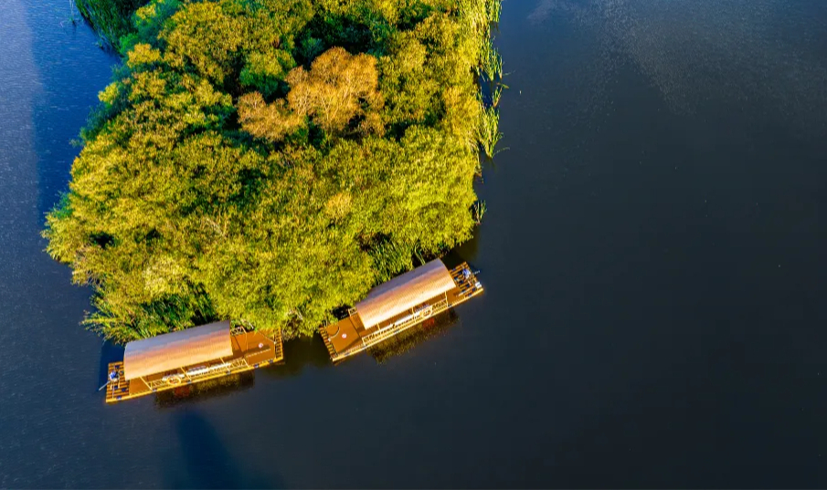 長春凈月潭濕地面積約100萬平方米,沿途河流蜿蜒曲折,兩岸水草豐茂,19座無人小島神秘幽靜,野鴨四處游蕩,白鷺水面爭鳴,偶然可見魚躍水面的奇觀。清晨、傍晚水面煙霧浩渺,竹筏緩行,朦朧之中,勝似仙境!