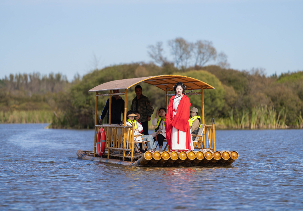 這里既有北國灑脫大氣的自然風光,又以竹筏為美景注入了江南水鄉的唯美和靈動。舟行江中,兩岸如畫,且竹筏平穩舒適,是古風拍照打卡的好地方!