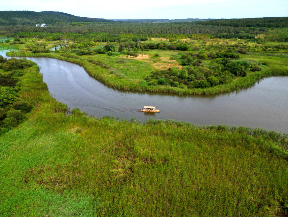 1、乘坐竹筏游覽濕地風光:蘆葦、野鴨、荷花、古樹、螃蟹。