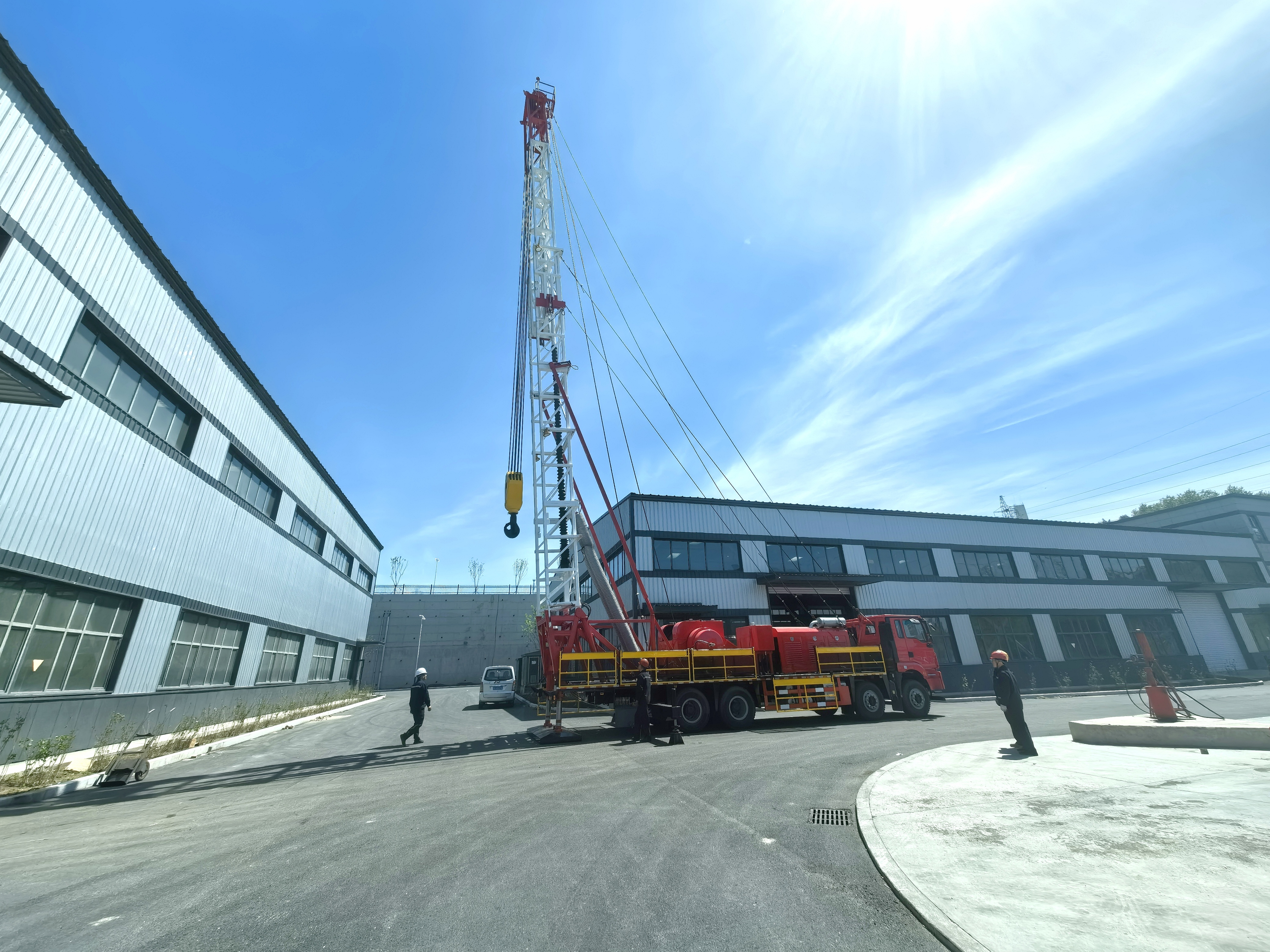 考察過程中,企業負責人向哈薩克斯坦外商詳細介紹了公司產品在制造工藝、產品質量以及作業能力等方面的優勢,并現場演示了350修井機在模擬作業環境中的狀態。