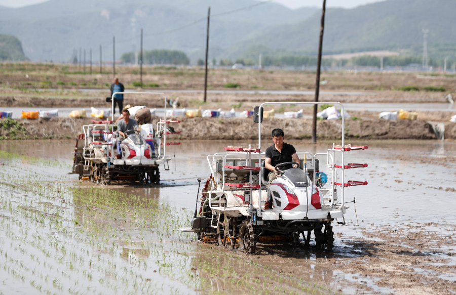 5月22日,在延吉市水稻種植主要集中地朝陽川鎮,在田間地頭,農戶們正在進行機械插秧,一排排嫩綠的秧苗穩穩地挺立在水田里,成為這個時節鄉間的一道亮麗風景。