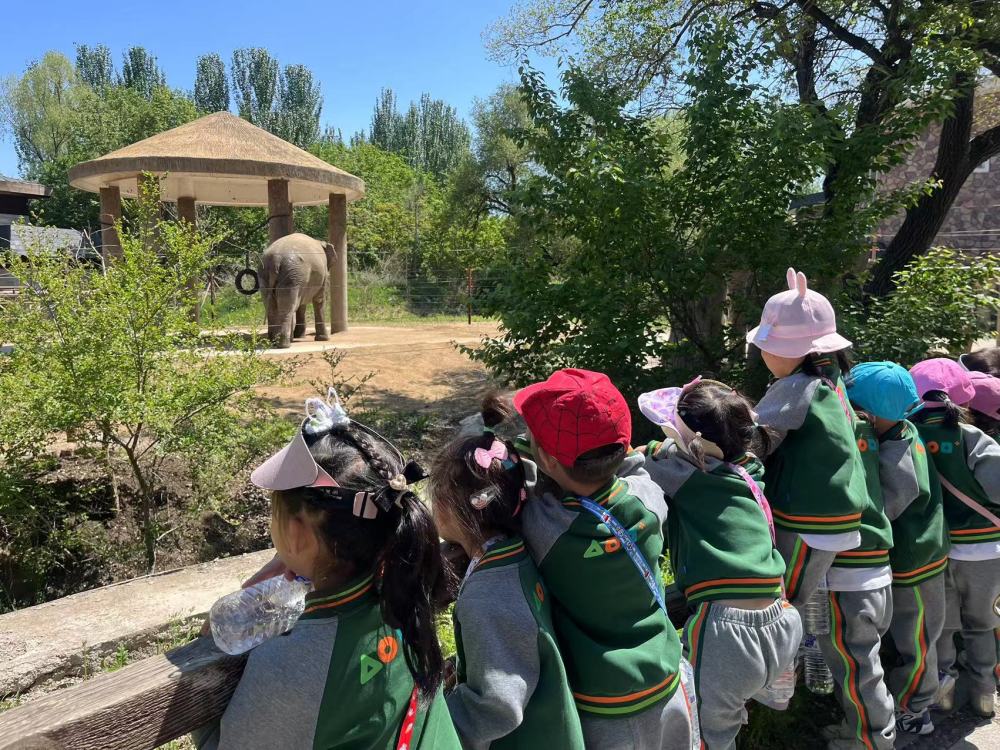 5月20日,小朋友們在長春市動植物公園觀賞母象“昂亞”。新華社記者 趙丹丹 攝