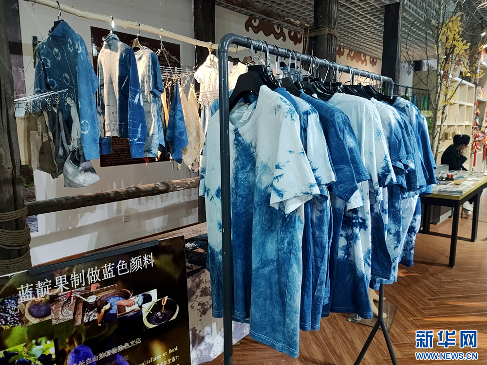 以藍靛果制成藍色顏料轉印染色的衣物 新華網發 黃維 攝