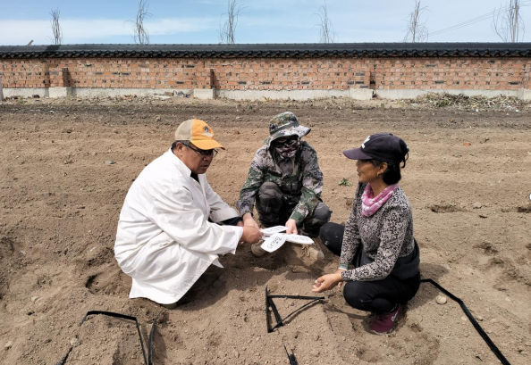 近日,吉林省農科院花生研究所何中國、楊翔宇、王偉、任孝慈等科研人員,來到龍井市智新鎮龍海村,與市工信局駐村干部、村干部和試種戶,以覆膜與非覆膜方式在2畝試驗地里,種植了“吉花21、吉花23、吉花24、吉花56”4個試驗品種。