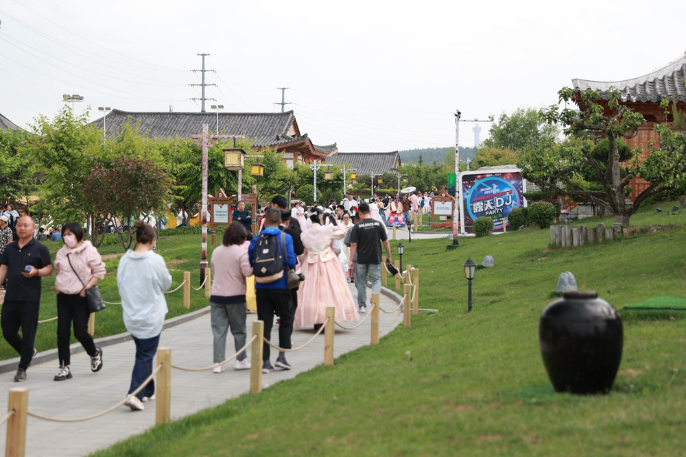 節日期間,延吉各景區、廣場人潮涌動。 帽兒山(恐龍)文化旅游區接待游客6.75萬人次,實現旅游收383.31萬元,其中,中國朝鮮族民俗園預計接待游客5.08萬人次, 預計實現營業收入120.16萬元。這個端午節,中國朝鮮族民俗園再掀旅游熱潮 ,游人如織、“公主”云集,日均接待游客2萬人次,同比去年增長30%。