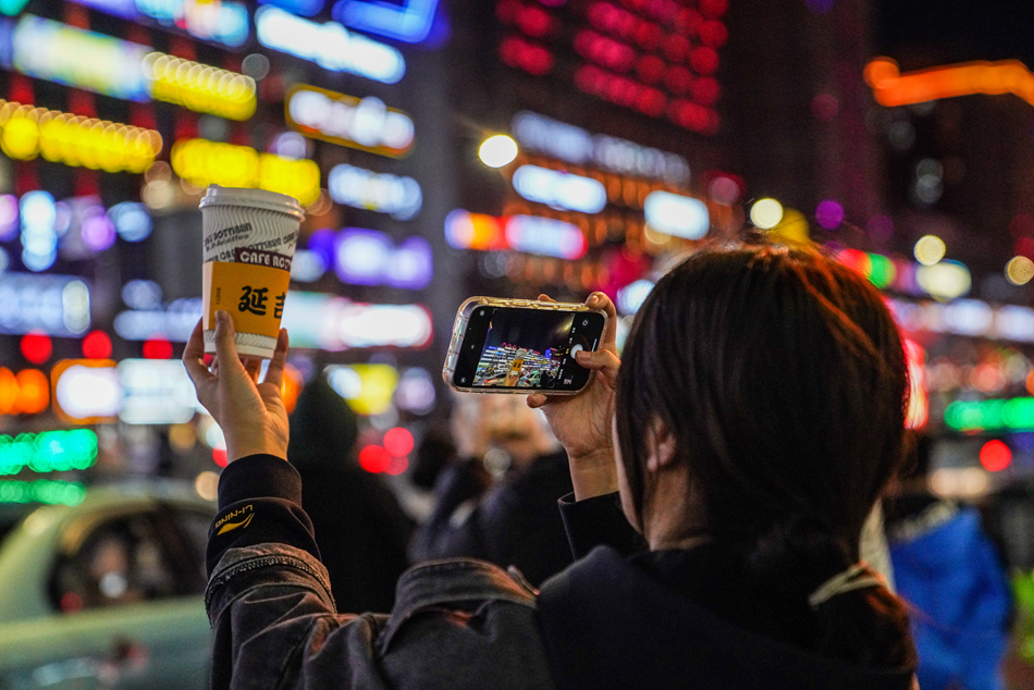 游客手拿咖啡在延吉市打卡拍照。新華社記者 顏麟蘊 攝