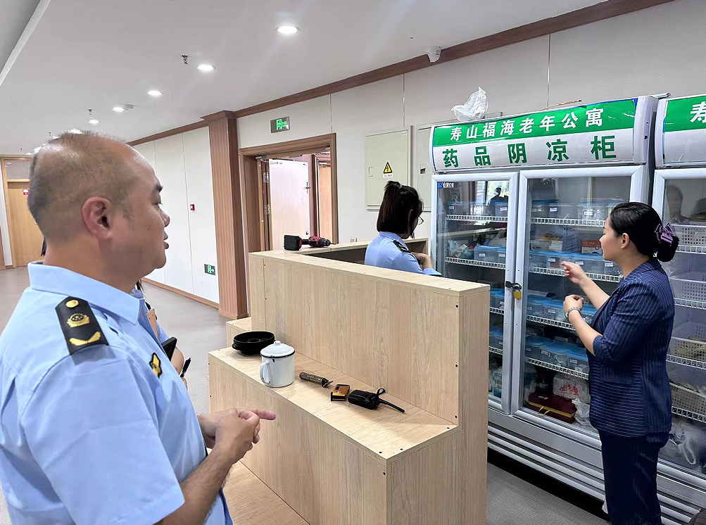 針對養老機構醫務室僅為在院老人的個人藥品提供集中存放、按時發放等服務的,也要嚴格落實藥品相關管理規定。檢查過程中,執法人員向醫務人員普及了藥品相關法律法規,介紹了藥品養護常識,提醒醫務人員定期開展自查自糾,不斷提升藥品管理能力,切實履行崗位職責。