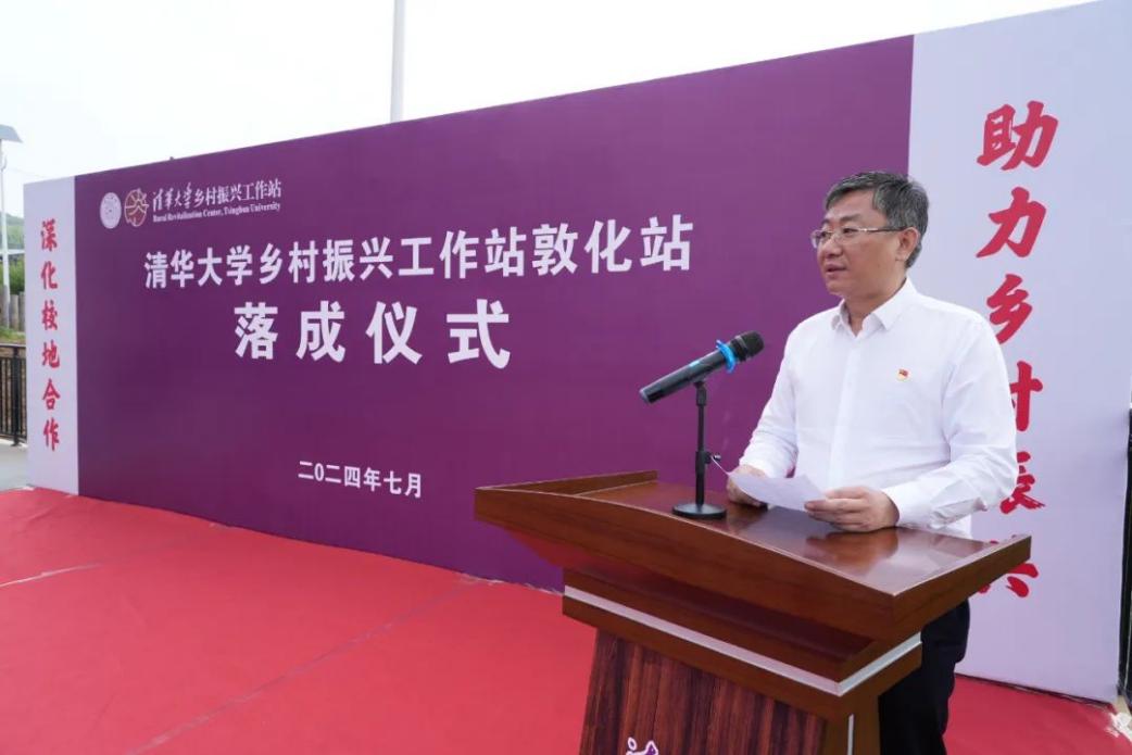 敦化市委副書記、市長唐振生在致辭中說,近年來,敦化市聚焦鄉村發展、鄉村建設、鄉村治理三大任務,深入實施鄉村振興戰略,全面開啟農業農村現代化建設新征程。清華大學鄉村振興工作站能夠將吉林省首站選址敦化,充分體現了清華大學對敦化的信任和青睞,敦化將努力成為校地人才精誠合作的典范,為建設宜居宜業和美鄉村、全面推進鄉村振興提供更有力的技術人才支撐。敦化市將持續加強對工作站建設和運營的支持,提供更廣闊的實踐空間和更豐富的研學內容,與廣大師生攜手并進,探索鄉村振興新模式、人才培養新方法,努力打造延邊鄉村振興的“敦化樣板”。