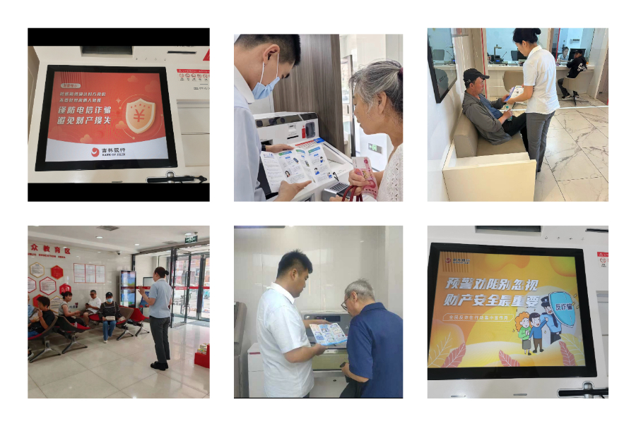 發揮網點優勢,開展陣地宣傳。吉林分行在營業網點懸掛防騙標語,在宣傳欄擺放宣傳折頁,利用廳堂電視播放防詐騙案例,在ATM/ITM等自助設備滾動播放防詐騙提示,通過多種方式向客戶傳遞電信詐騙金融知識。同時還以廳堂微沙龍宣講方式講解防范電信網絡詐騙內容,并結合網點業務特點,在客戶辦理開立結算賬戶、開通手銀行及對公網銀等業務時,由柜面及廳堂人員做好風險提示義務,積極營造濃厚宣傳氛圍。