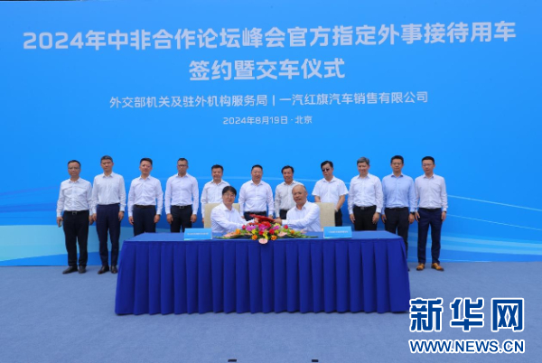 8月19日,2024年中非合作論壇峰會官方指定外事接待用車簽約暨交車儀式在北京舉行。一汽紅旗將攜旗下C+級旗艦轎車新紅旗H9、東方豪華旗艦MPV紅旗HQ9、豪華禮賓新旗艦紅旗國悅,在本次論壇峰會期間為與會貴賓提供高水準的出行服務。
