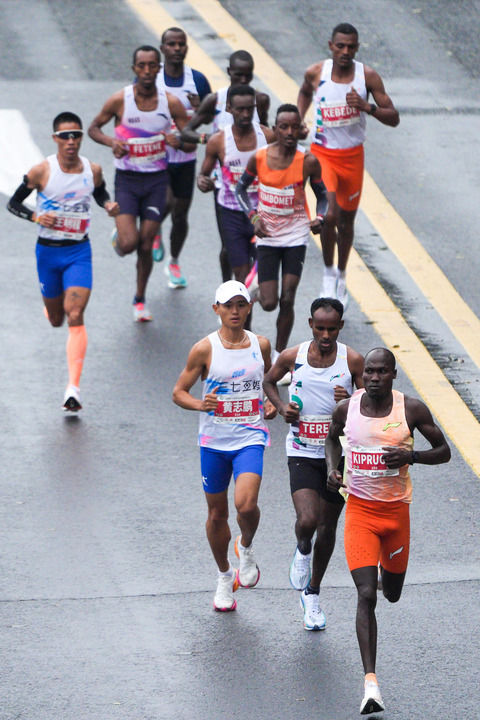 9月1日,全程馬拉松男子冠軍道格拉斯?基梅利?基普魯古特(Douglass Kimeli KIPRUGUT)(前一)在比賽中。