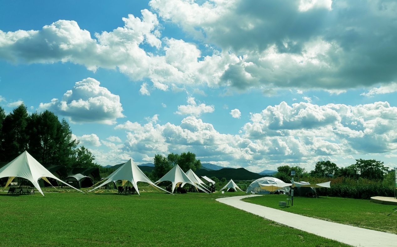 9月5日,吉林市豐滿區江南鄉阿什村一家農家樂山莊內,草坪平整,數個形態各異的帳篷錯落有致。吉林市“村游”江城系列活動之“鄉村干部喊您來‘村游’”體驗活動來到這里推介。