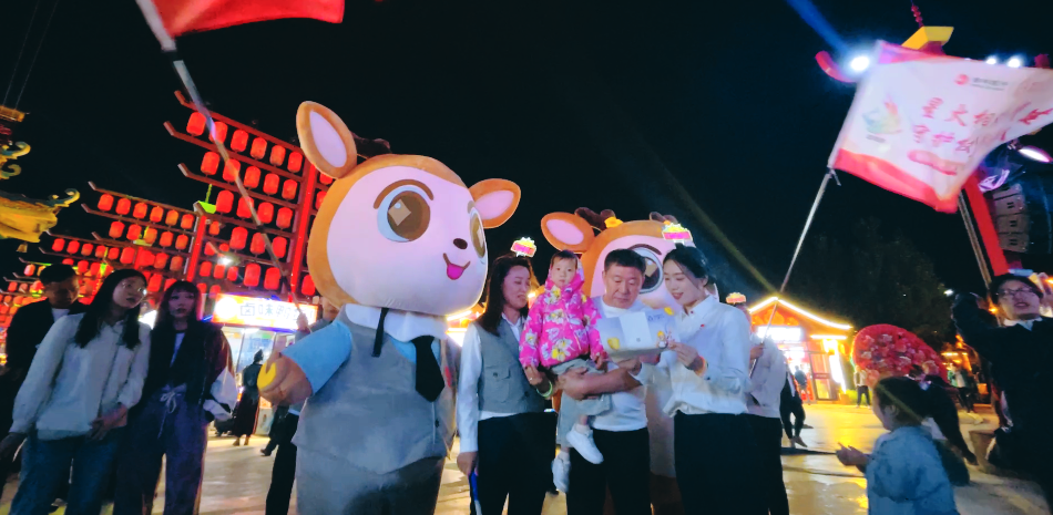 吉林銀行金融宣教工作人員還組成"導游"團,身穿"小吉"玩偶服、頭戴“吉林銀行”星光發卡,帶領群眾穿梭游覽不夜城各主題消保宣教展區,讓百姓在領略人間煙火的同時,更好地體驗吉林銀行消保宣教“星火之旅”。