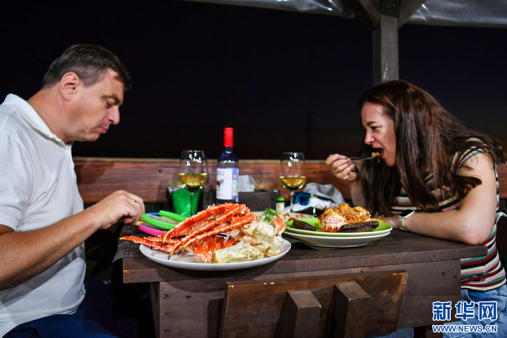 食客們在俄羅斯符拉迪沃斯托克的一家餐館品嘗帝王蟹。