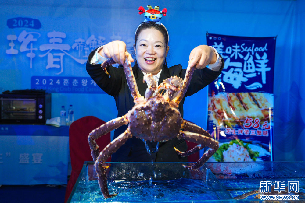 在吉林省琿春市,商家展示售賣的帝王蟹。