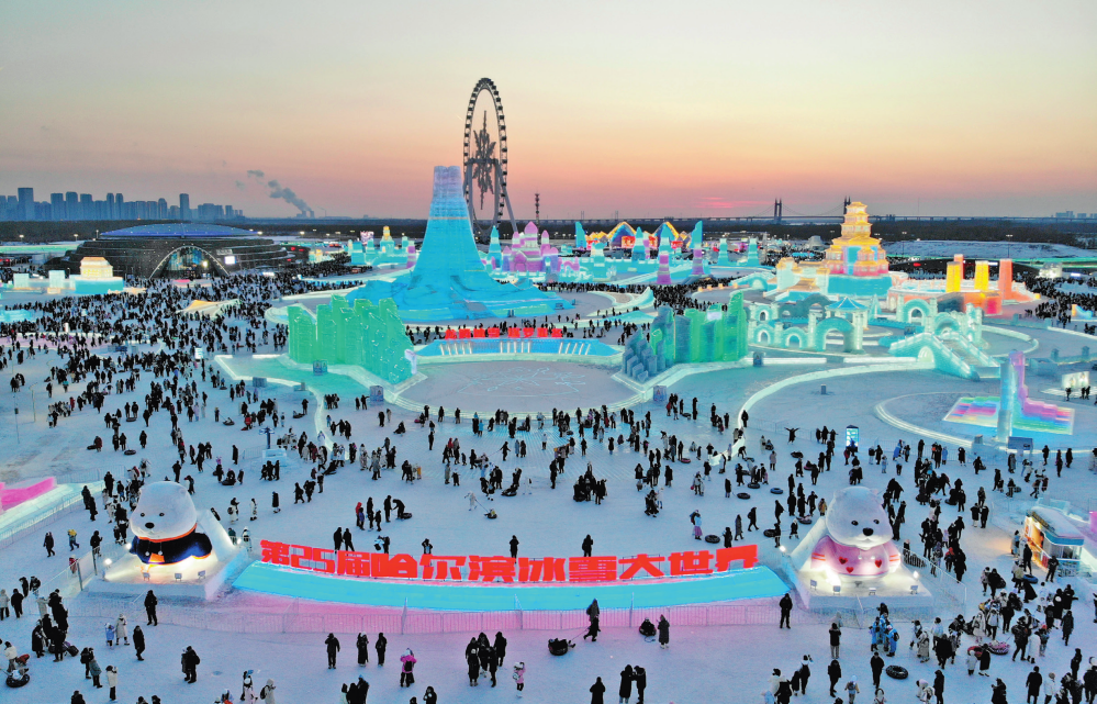 游客在哈爾濱冰雪大世界園區內 游玩(2024 年 2 月 15 日攝) 王建威攝 / 本刊